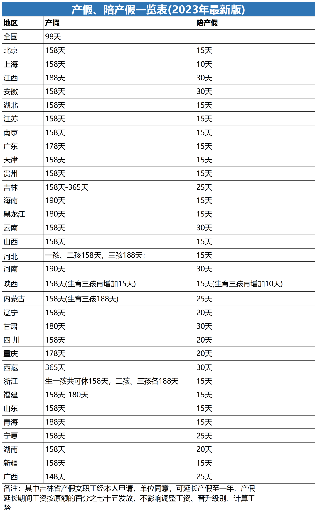3、全国多地产假、陪产假一览表