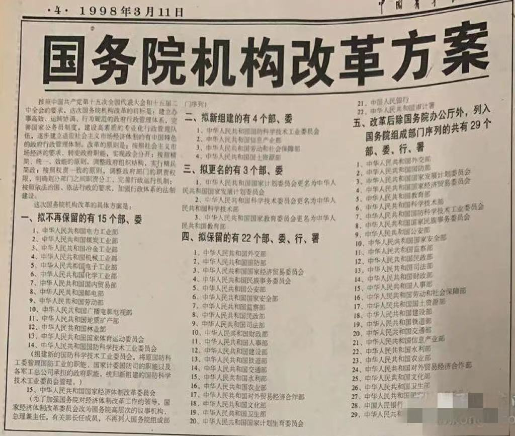 为适应社会主义市场经济发展需要,切实转变政府职能,1998年3月10日,九届全国人大一次会议审议通过了《关于国务院机构改革方案》,迎来了新中国成立以来规模大的一次政府机构改革。