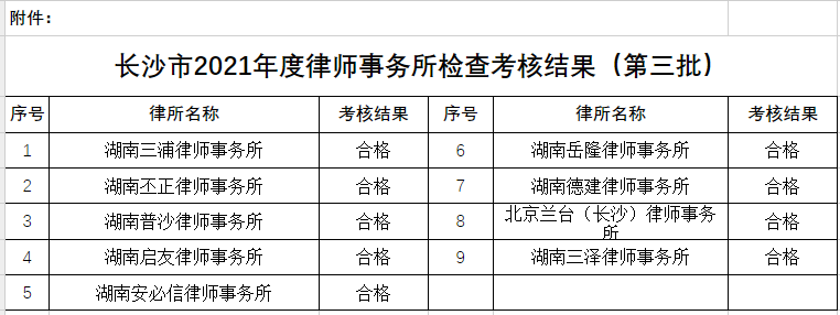 9家律师事务所考核结果评定为“合格”。
