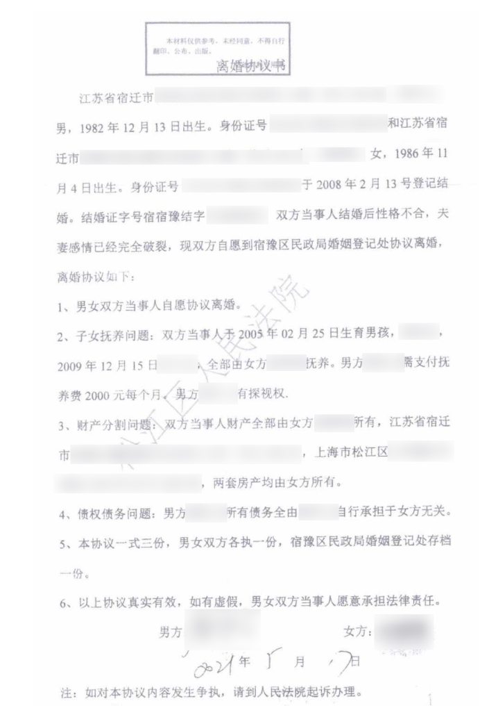 离婚协议是男女双方对解除婚姻关系、子女抚养和财产分割达成的复合型协议,系当事人意思自治范畴。一旦在民政部门备案登记离婚协议并领取离婚证,即产生相应的法律后果。
